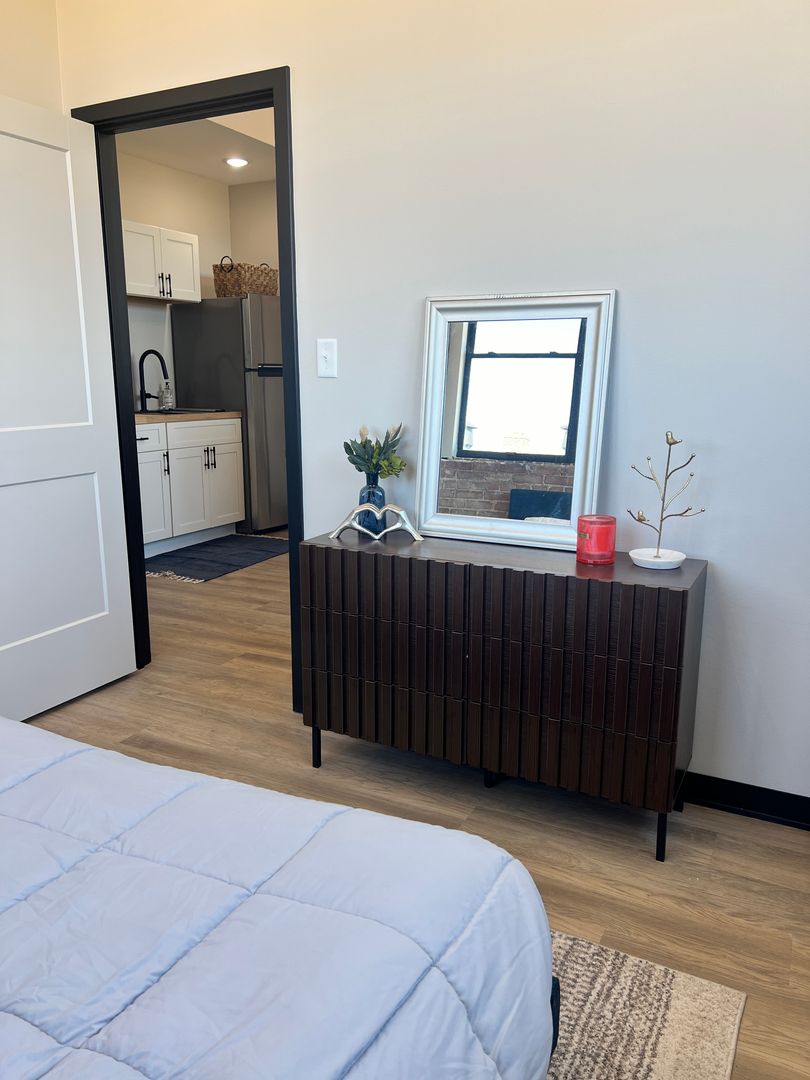 Discover these cozy 1-bedroom, 1-bathroom apartments in Downtown Edwardsville, conveniently located off Main Street. Close to shopping, dining, and entertainment options all in walking distance. With 14 units available on the second and third floor these units would make the perfect home for students, single living, bachelors, or traveling employees. Rent expenses include water, sewer, trash, and a monthly laundry allowance done right inside the building. 1 reserved parking space provided with street parking available, too. Staged unit with comparable floorplan, please see image #2 for exact unit layout.